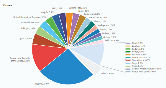La région Afrique paye toujours le plus lourd tribut, cumulant à elle seule 94 % du nombre total des cas et 95 % des décès associés au paludisme au niveau mondial selon les estimations de 2023. Un peu plus de la moitié de ces décès ont été enregistrés dans quatre pays : Niger (5,9%), Nigéria (30,9%), République démocratique du Congo (11,3%) et République-Unie de Tanzanie (4,3%).