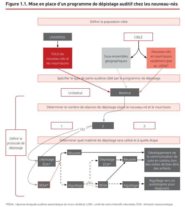 Télécharger le document intégral : Dépistage auditif : considérations sur la mise en œuvre. Washington, D.C. : Organisation panaméricaine de la Santé ; 2022. Licence : CC BY-NC-SA 3.0 IGO.