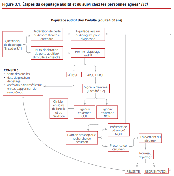 27. US Preventative Services Task Force. Screening for hearing loss in older adults. JAMA. Mars 2021; 325(12):1196–1201 (https://www.uspreventiveservicestaskforce.org/uspstf/recommendation/ hearing-loss-in-older-adults-screening, consulté le 18 mai 2021).