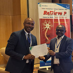 A l'occasion de la 4ème conférence de l'Académie Africaine de Neurologie organisée conjointement avec les 5èmes journées de l'Association Sénégalaise de Neurologie du 11 au 17 juillet 2024 à l'Hôtel Azalaï de Dakar, les laboratoires STRIDES ont remis un prix d'excellence à 5 communications sous forme de poster sur le thème : « Place de la combinaison fixe prégabaline et méthylcobalamine dans la prise en charge de la douleur neuropathique ».